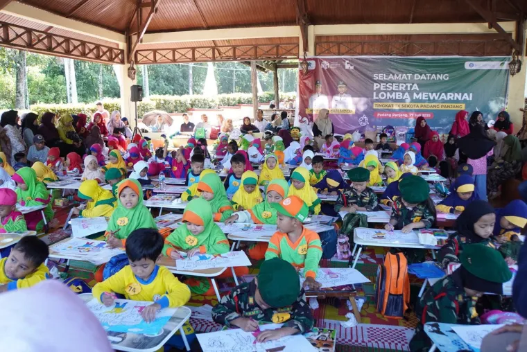 KontenMinang - Keceriaan terpancar saat 100 anak di berbagai Taman Kanak-Kanak (TK) se-Kota Padang Panjang mengikuti Lomba Mewarnai dalam rangkaian kegiatan Festival Literasi, Ahad(27/7/2025) di Pusat Dokumentasi dan Informasi Kebudayaan Minangkabau (PDIKM).